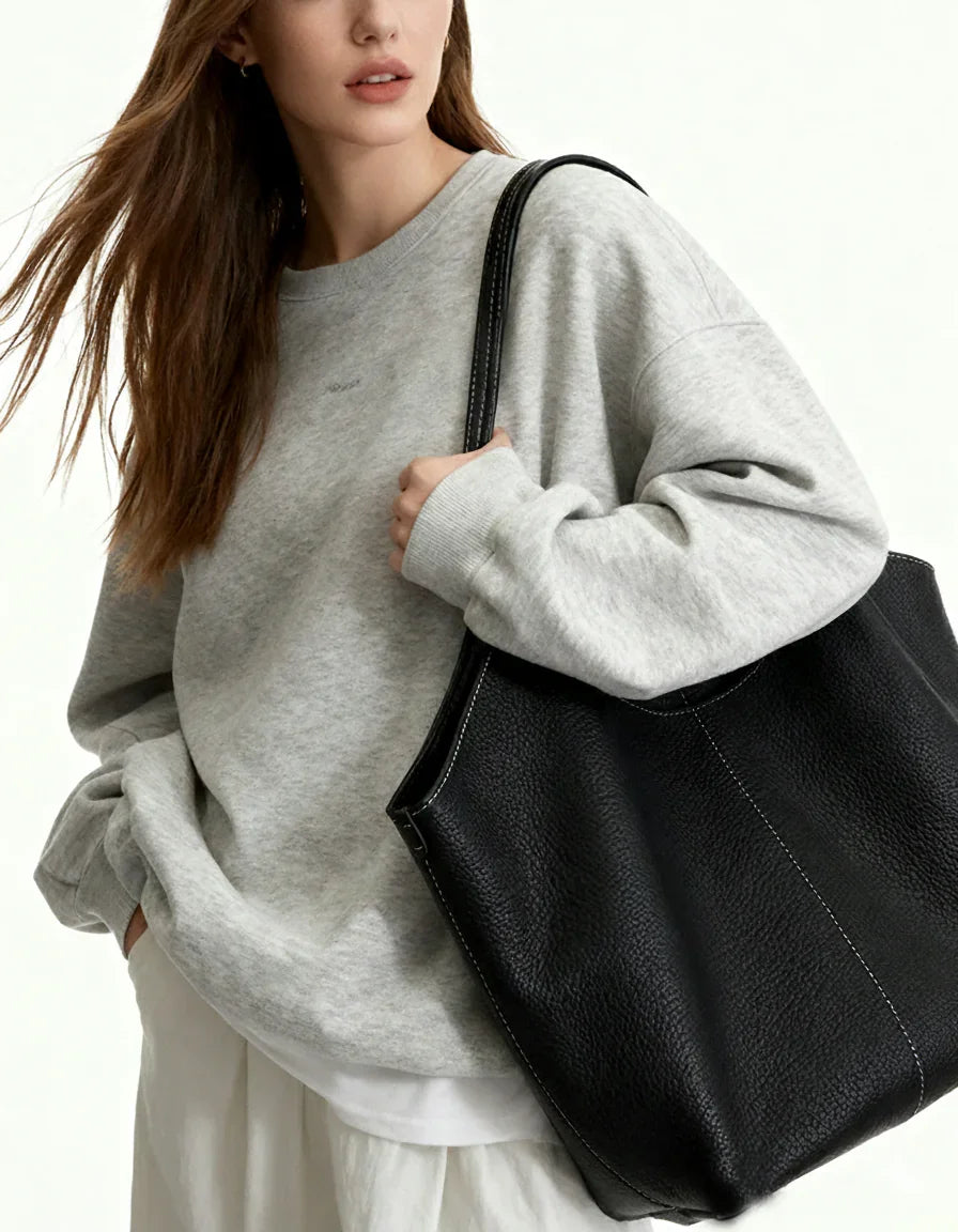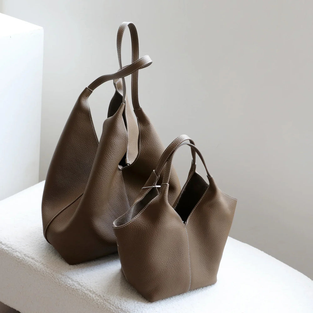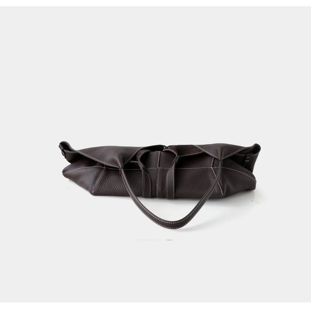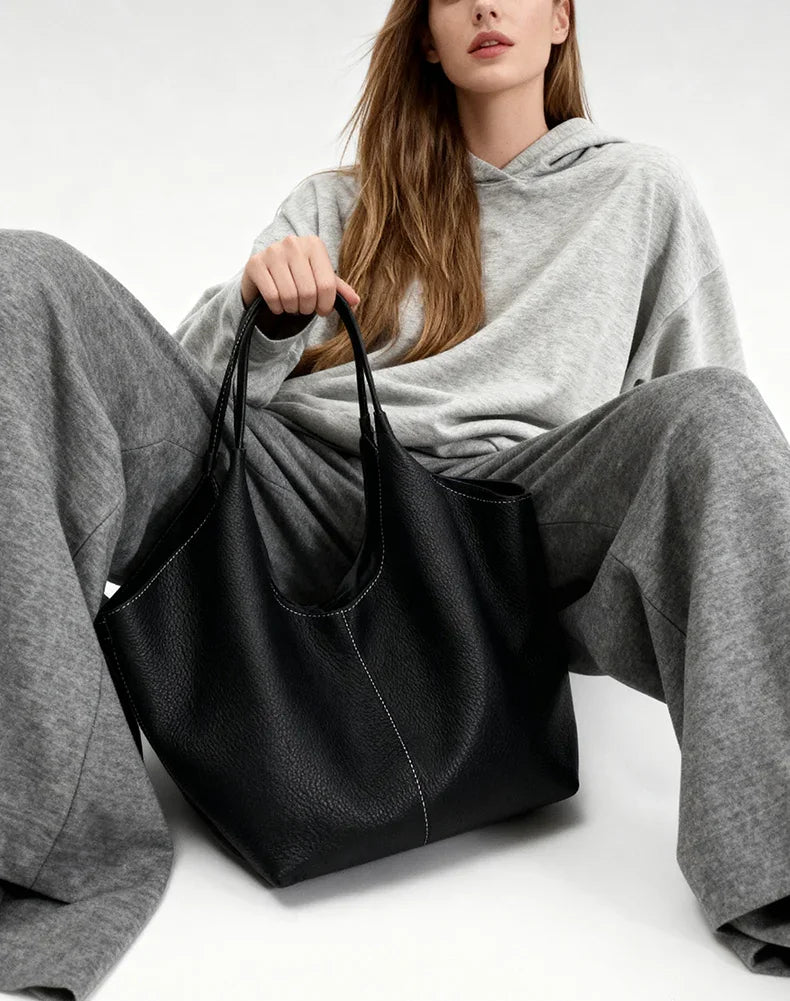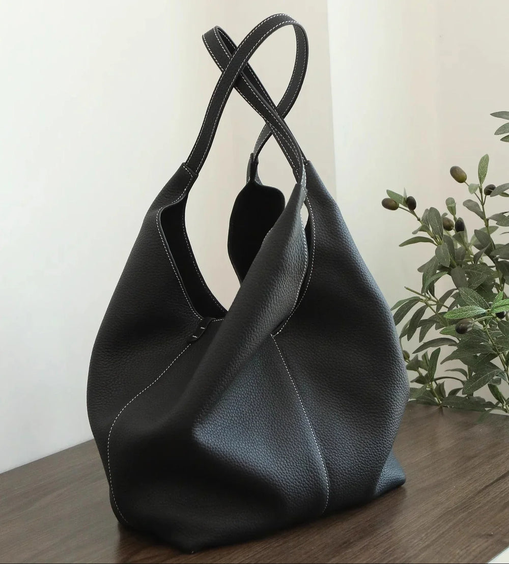 I regret getting a larger size, but I like the quality of the bag. The shape is unique, and the quality of the leather is good. I wish the bag had interior pockets