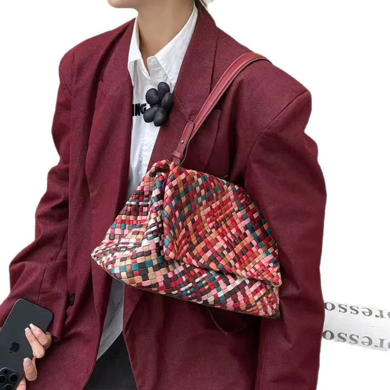 Multiple Colour Lambskin Hobo Bag, Large Handcrafted Woven Leather Shoulder Bag
