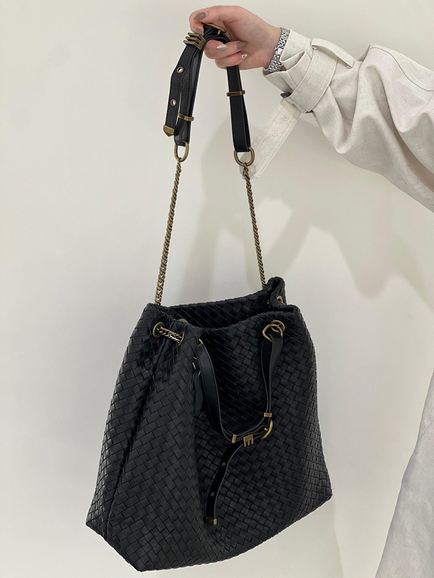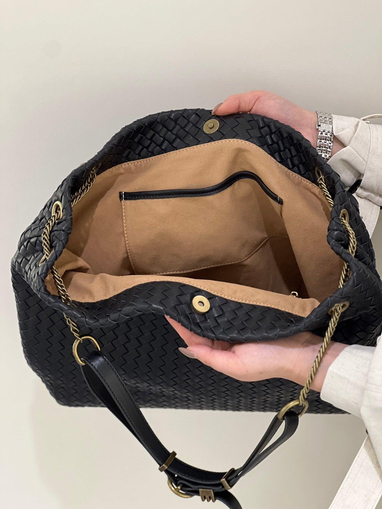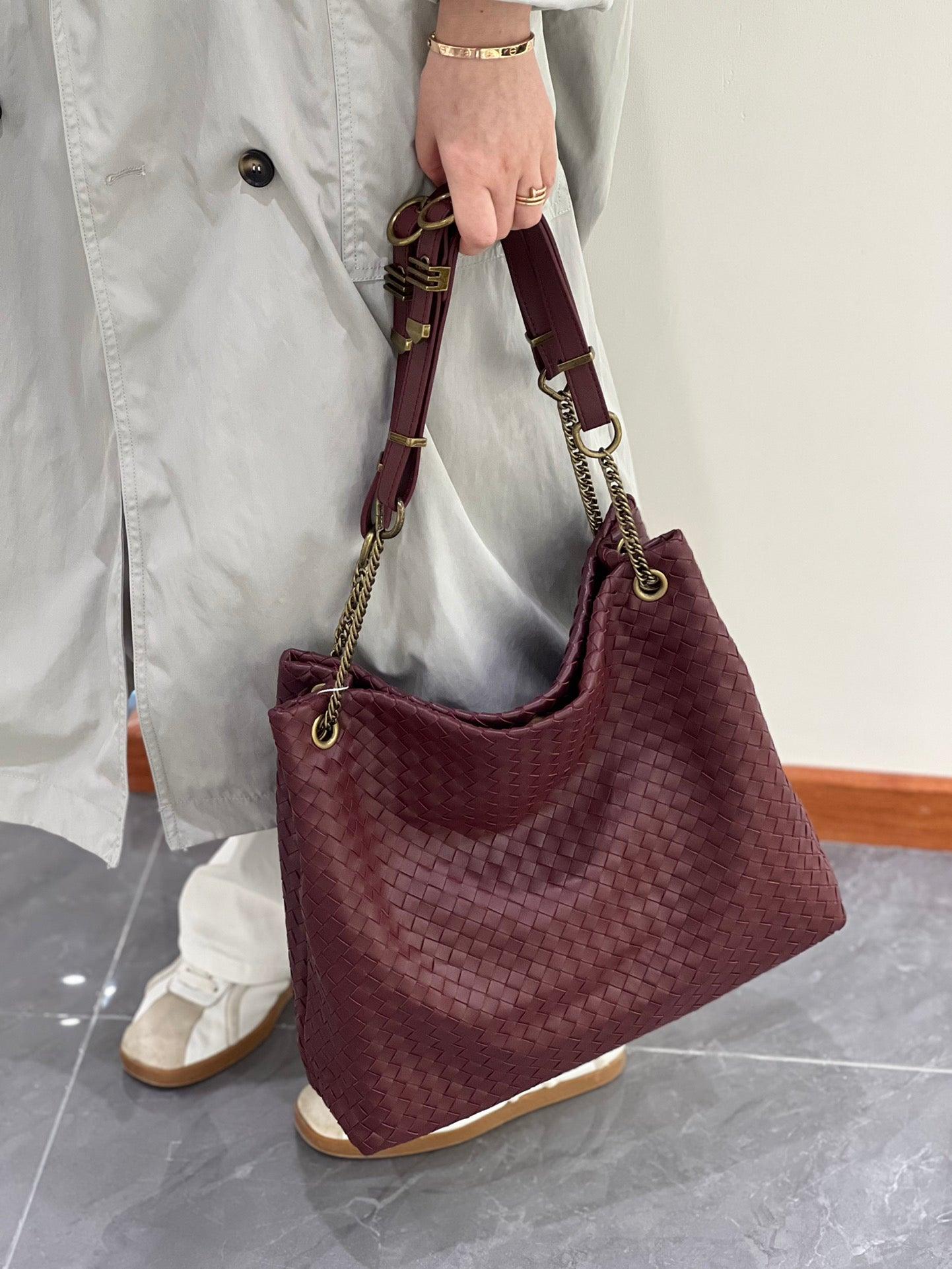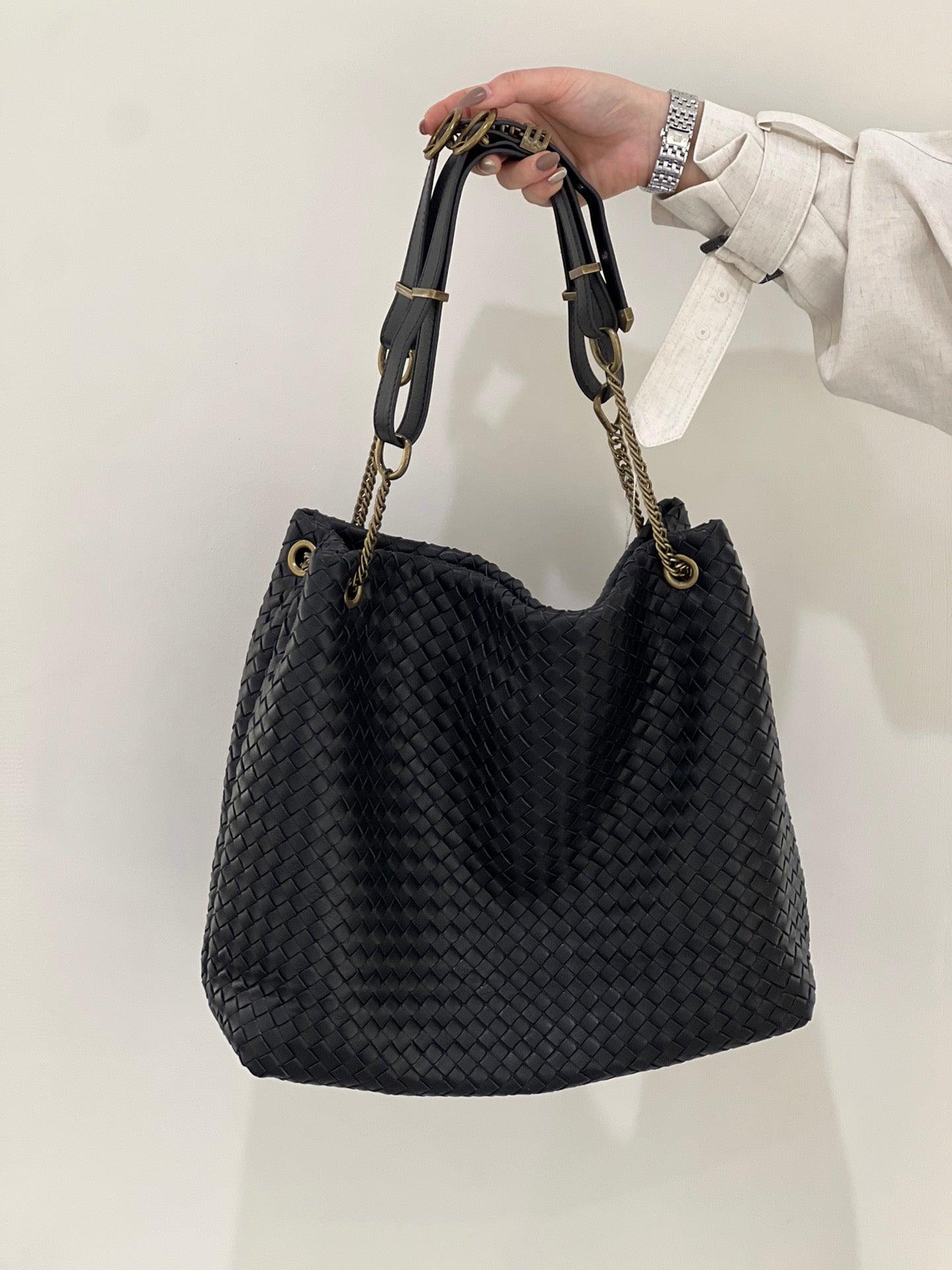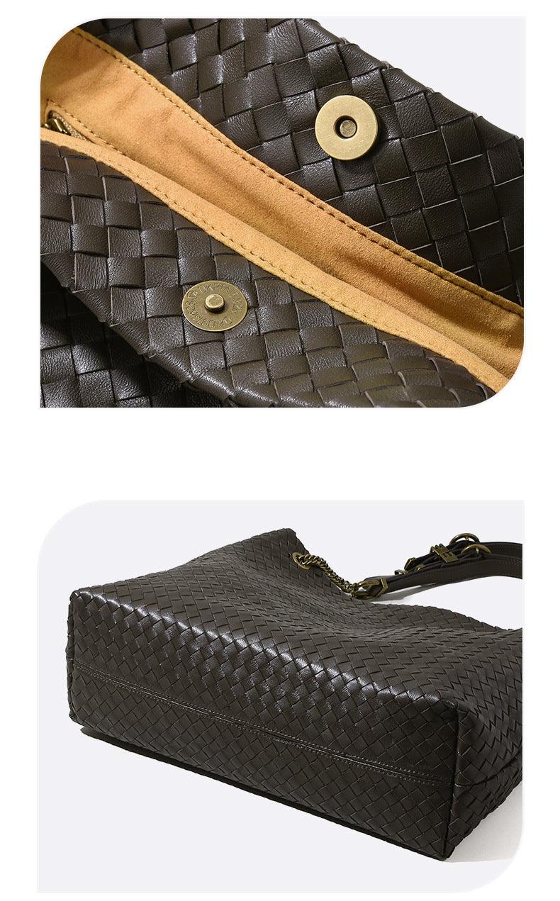 Premium Handwoven Lambskin Tote Bag | Handcrafted Vintage Lock Drawstring Spacious & Versatile Shoulder Bag, Lambskin Shopper