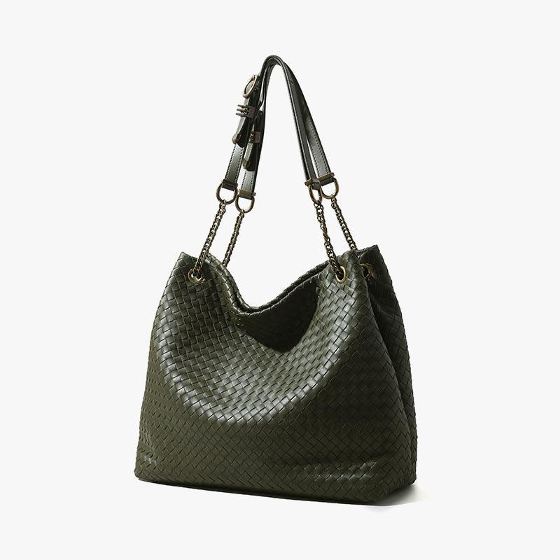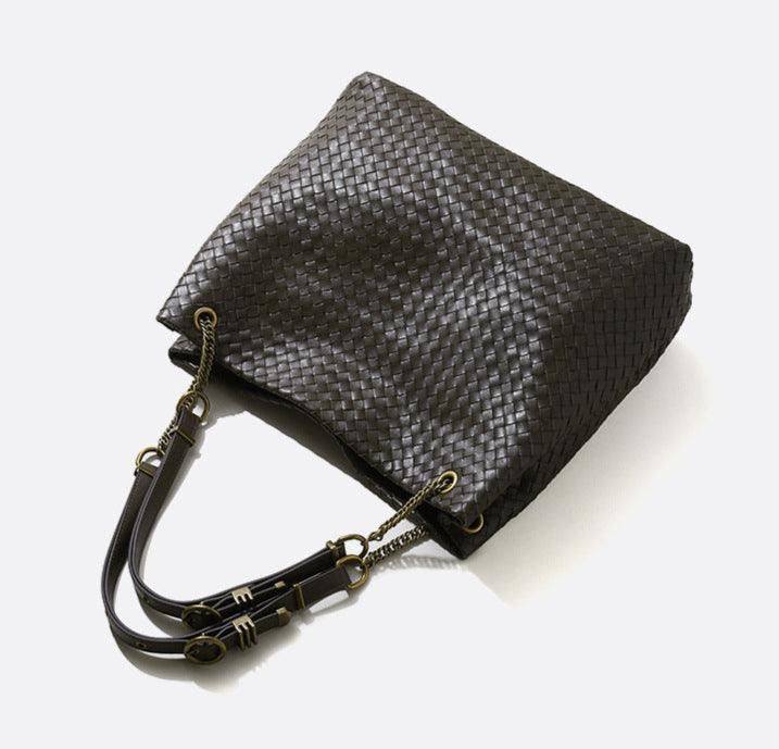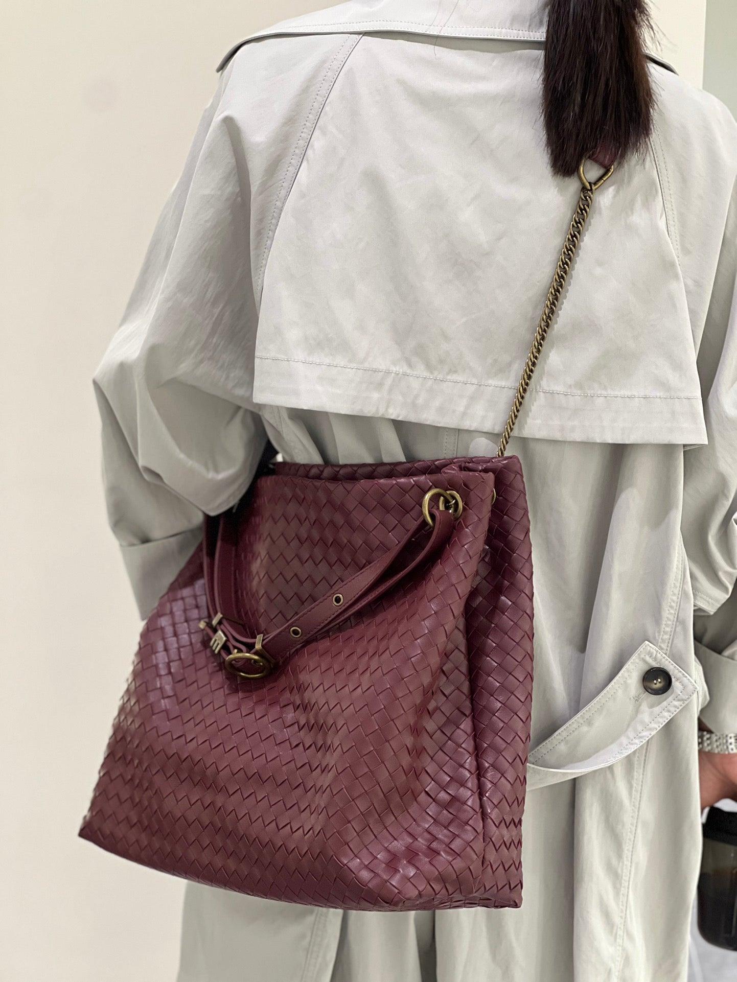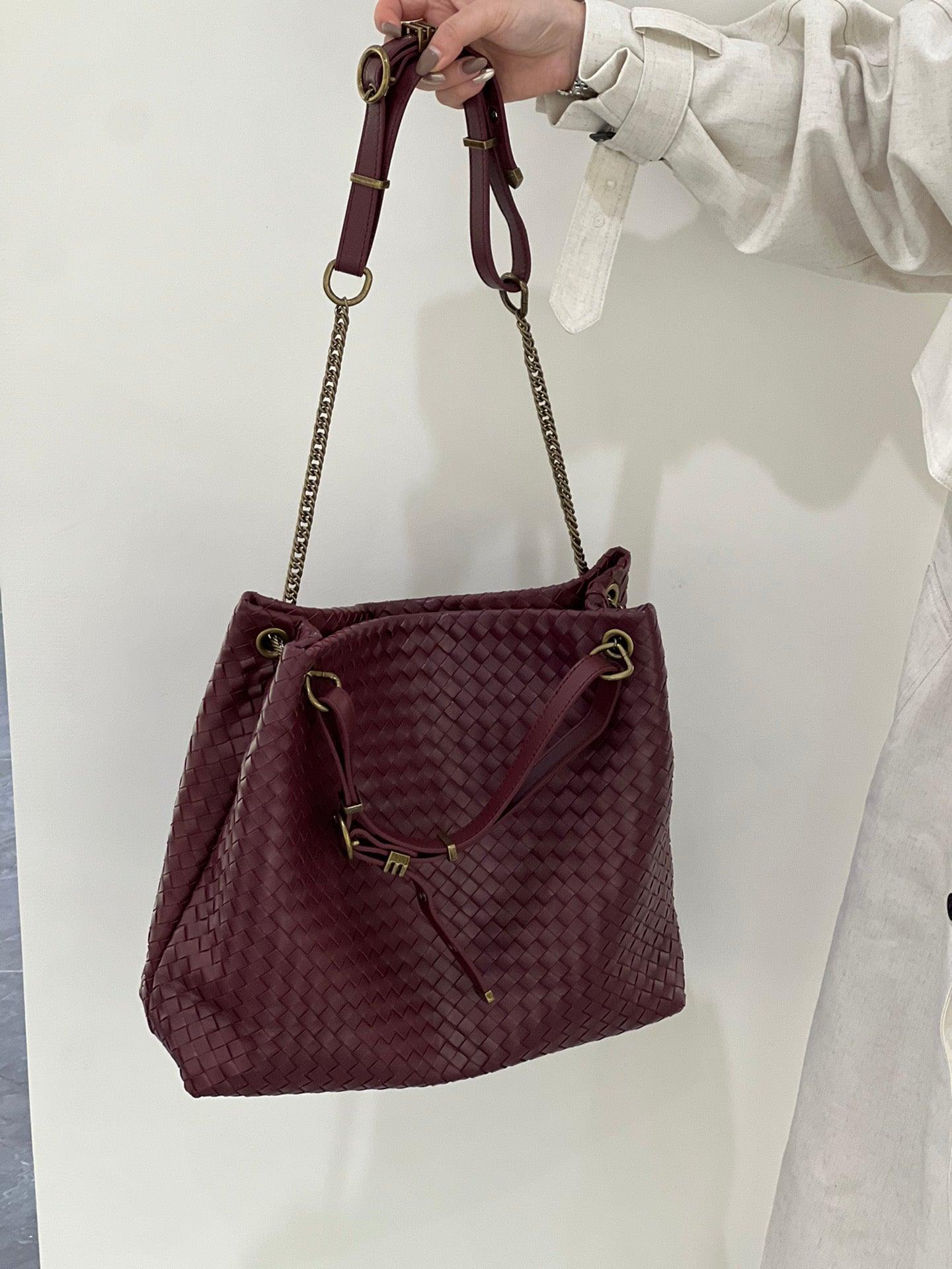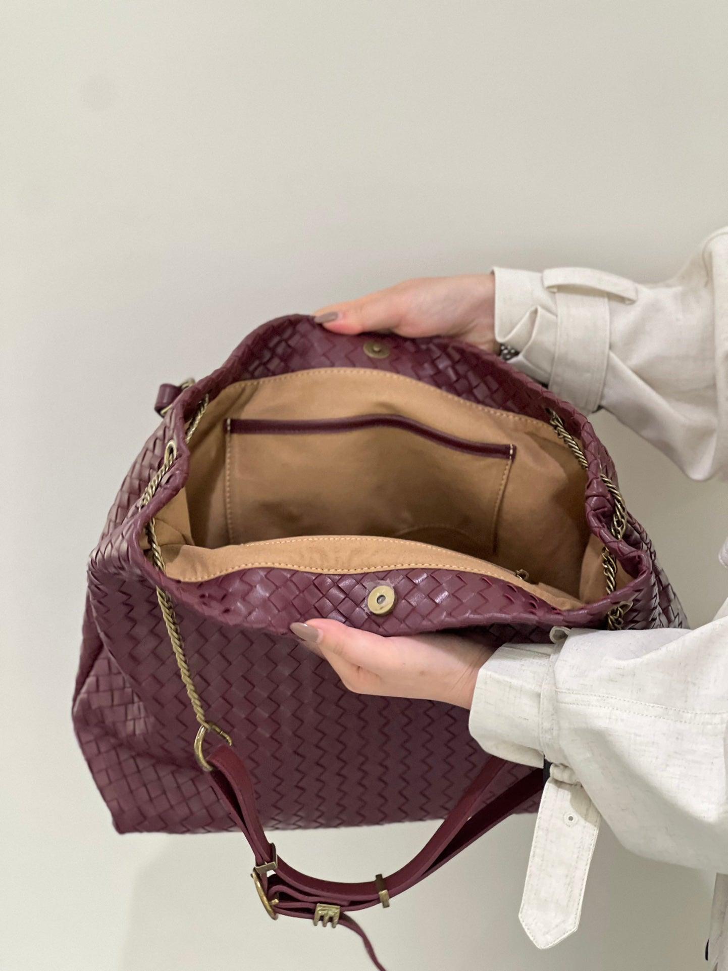 Premium Handwoven Lambskin Tote Bag | Handcrafted Vintage Lock Drawstring Spacious & Versatile Shoulder Bag, Lambskin Shopper