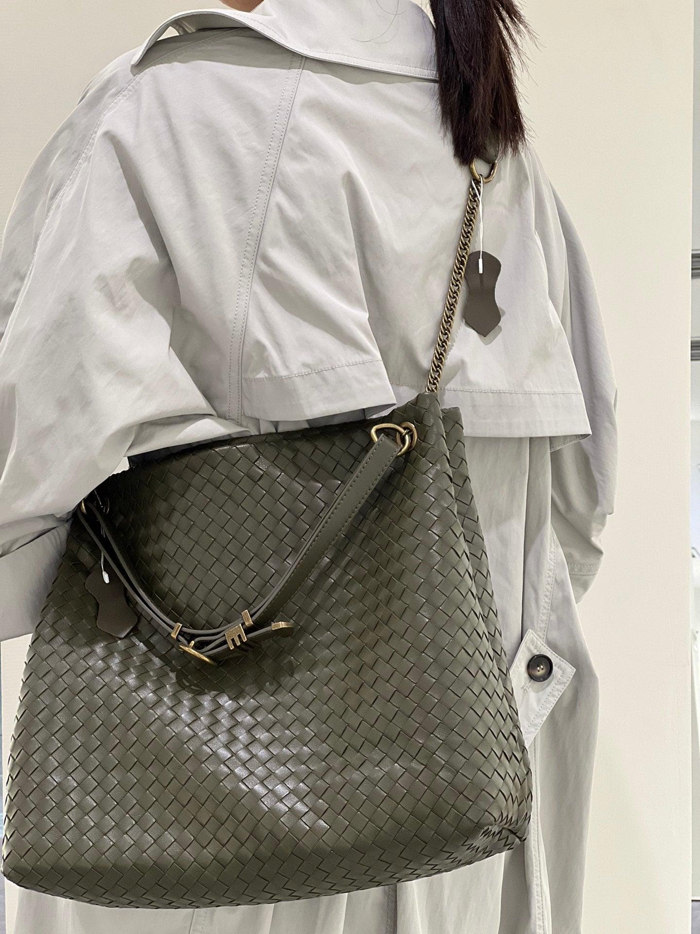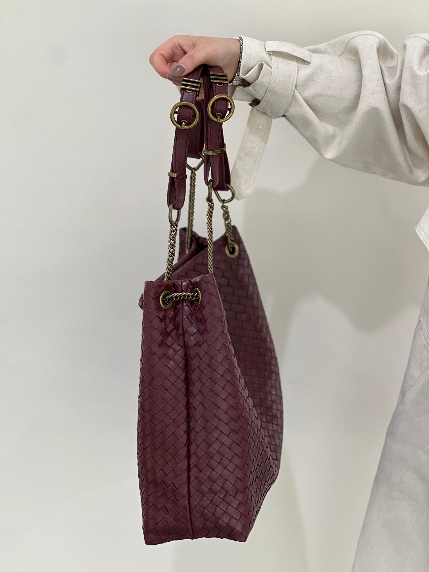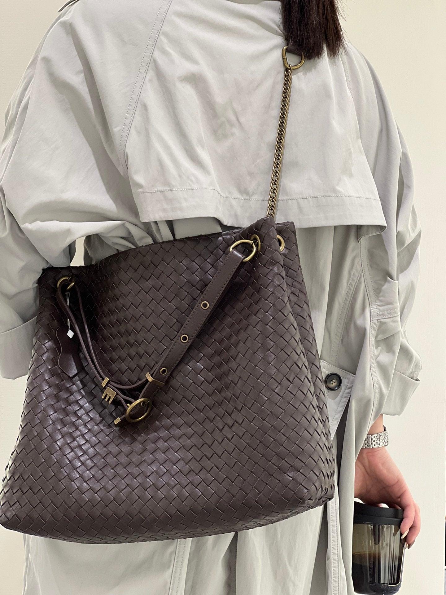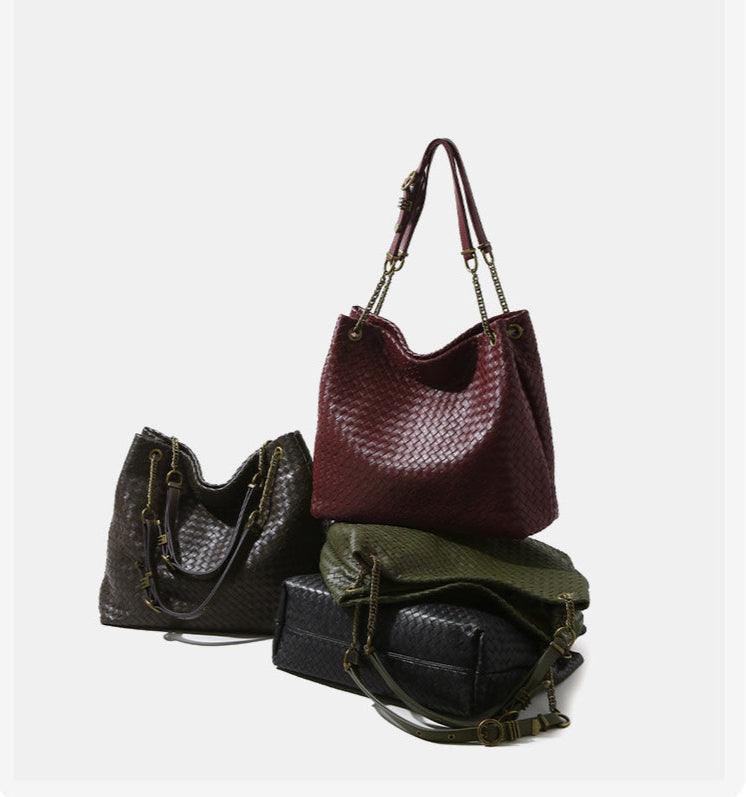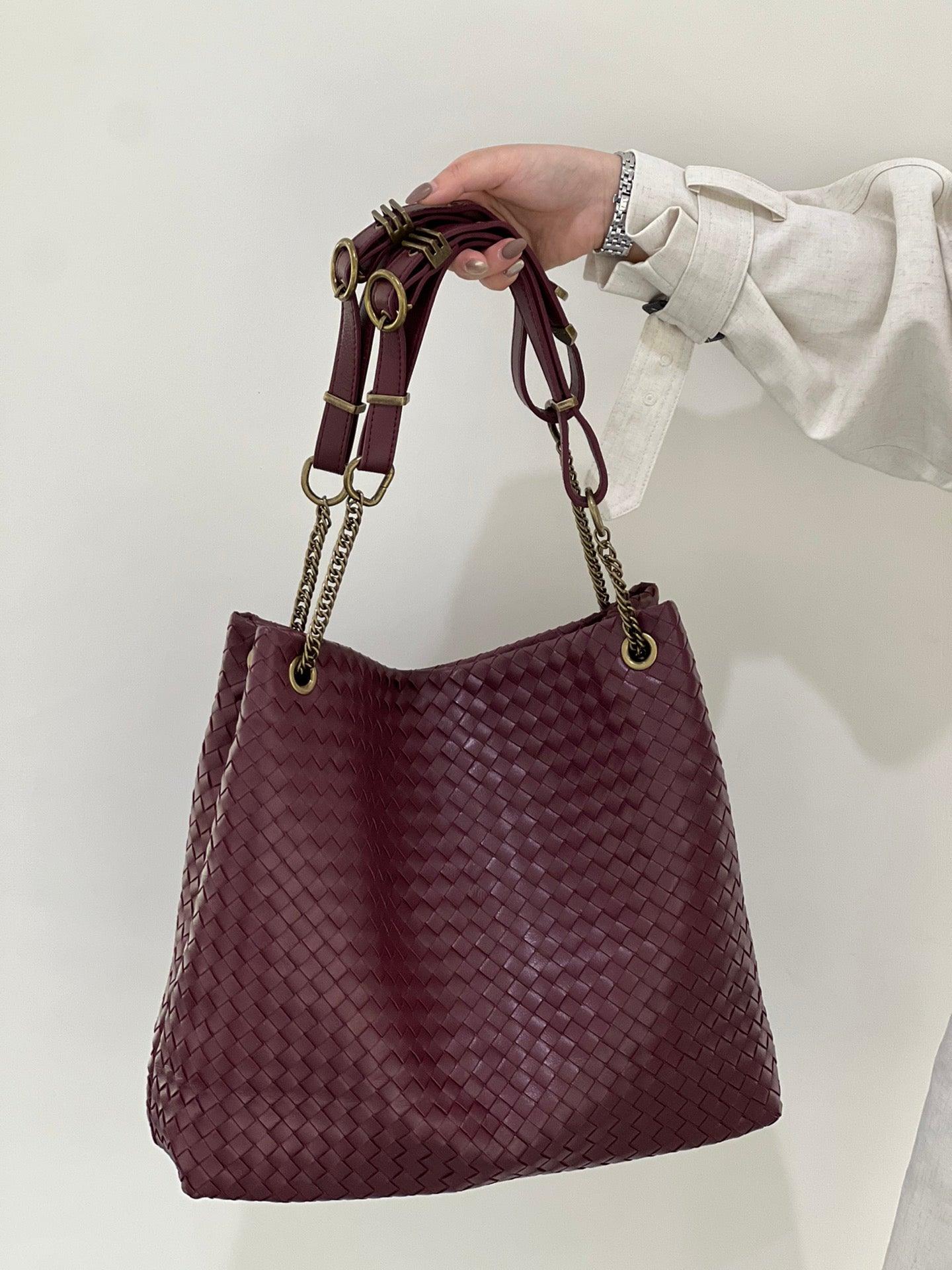 Premium Handwoven Lambskin Tote Bag | Handcrafted Vintage Lock Drawstring Spacious & Versatile Shoulder Bag, Lambskin Shopper