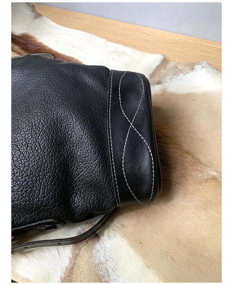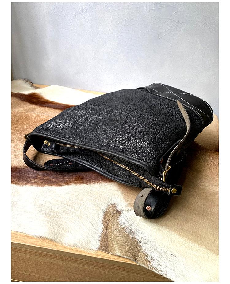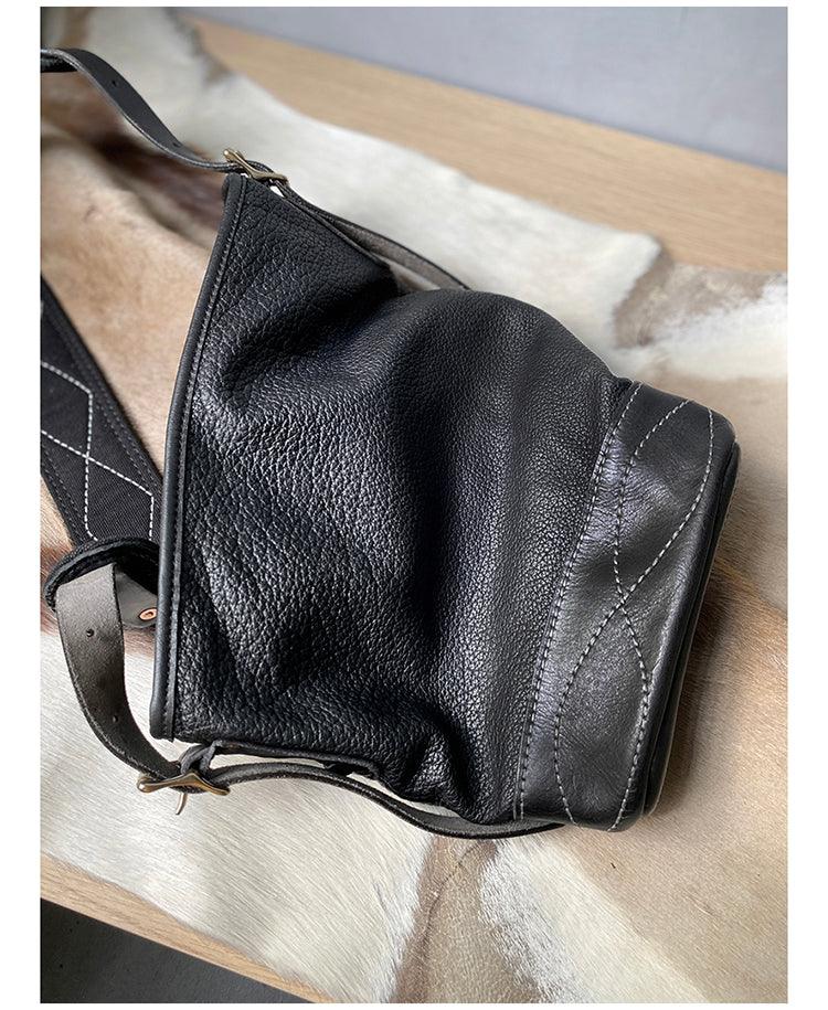 Soft and Delicate Feel Classic Plaid Crossbody Bucket Bag | Handcrafted Full Grain Leather Bag