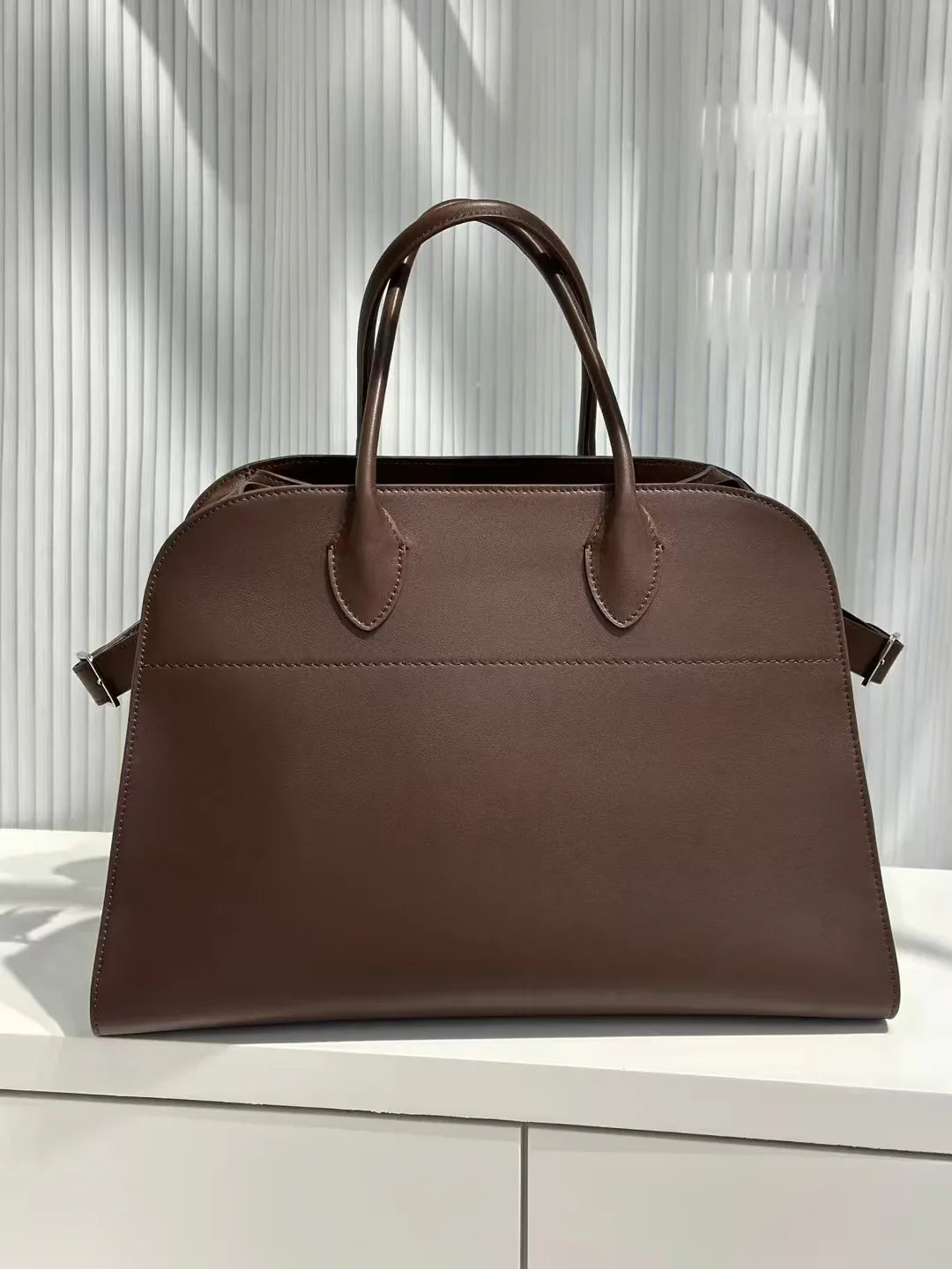 Lovely bag with a simple design. The leather is good quality and smells amazing. Though there were some issues with the edges peeling and some marks, the owner was super responsive and offered a solution quickly.