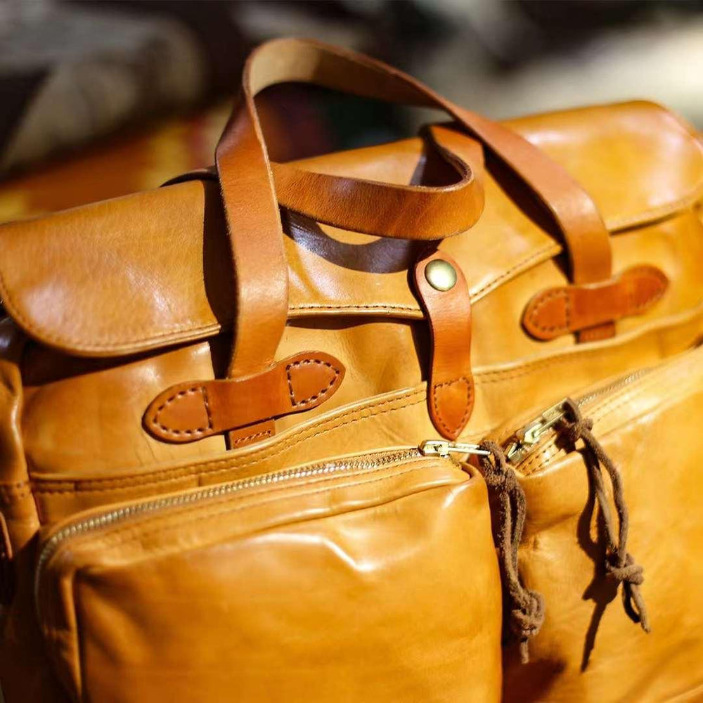 Beautiful bag! Very well made. Only disappointment is that the top handle isn't genuine leather. I don't understand why that choice was made.