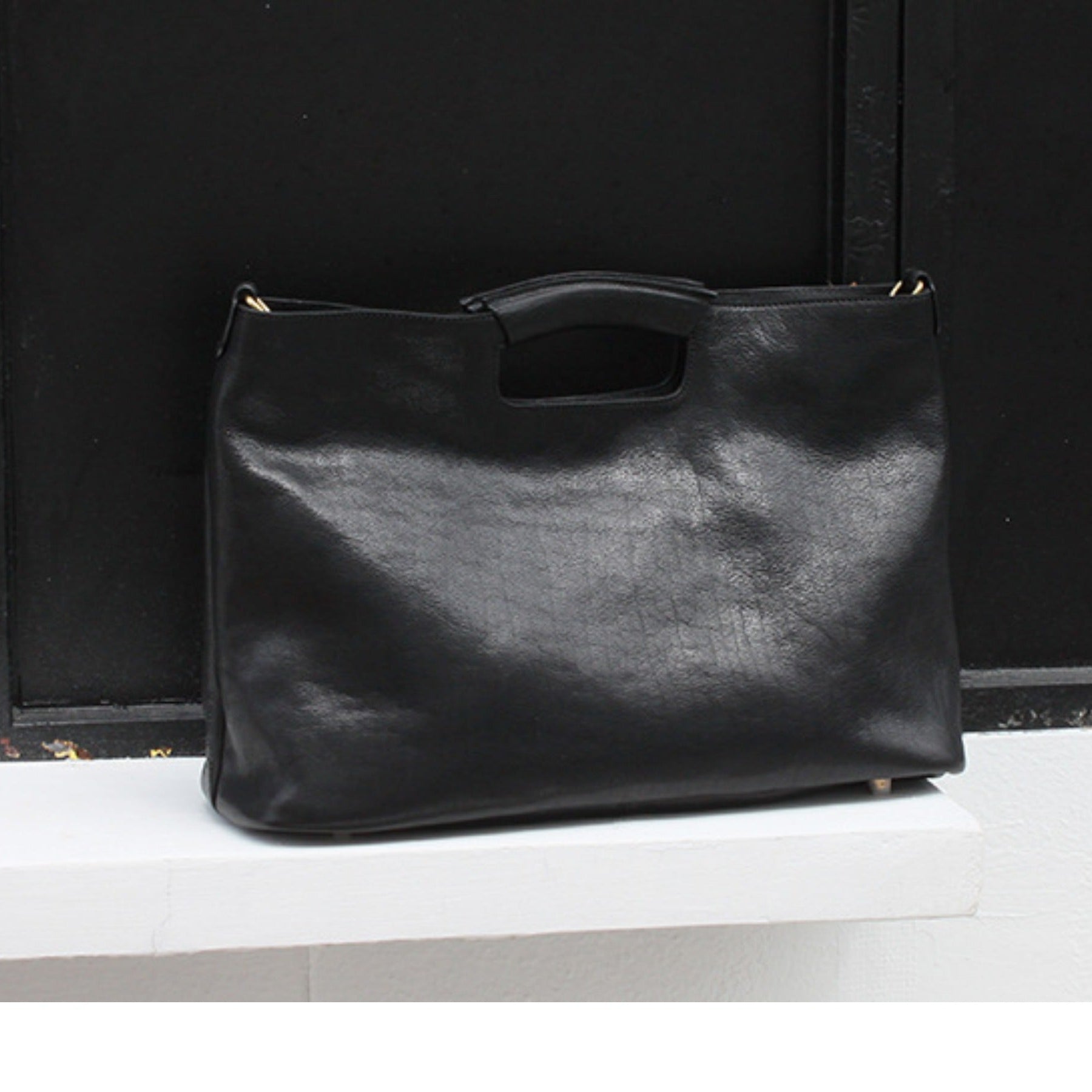 Women's Full Grain Leather Slouchy Tote Bag - Handmade Black Hobo Shoulder & Crossbody with Pouch
