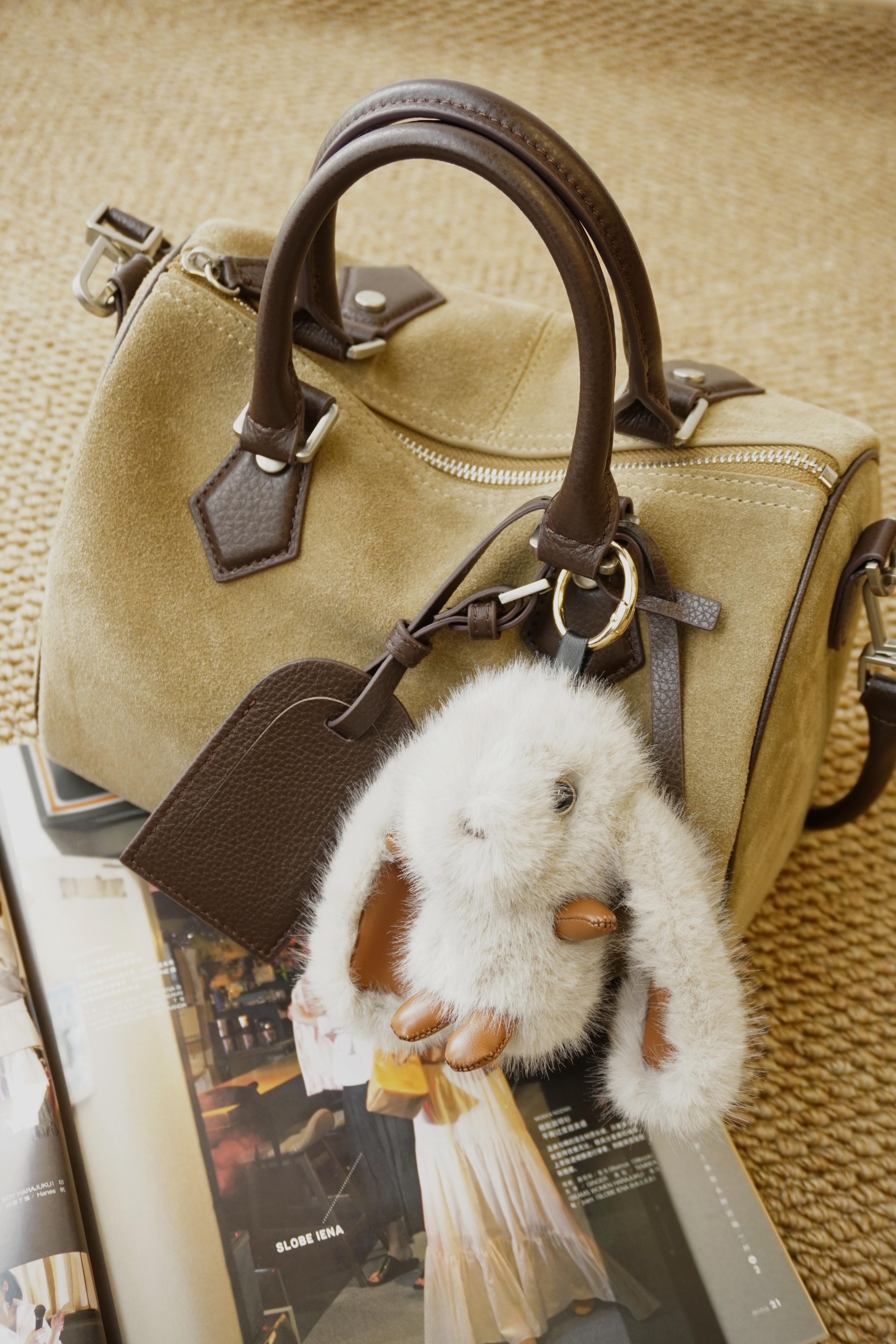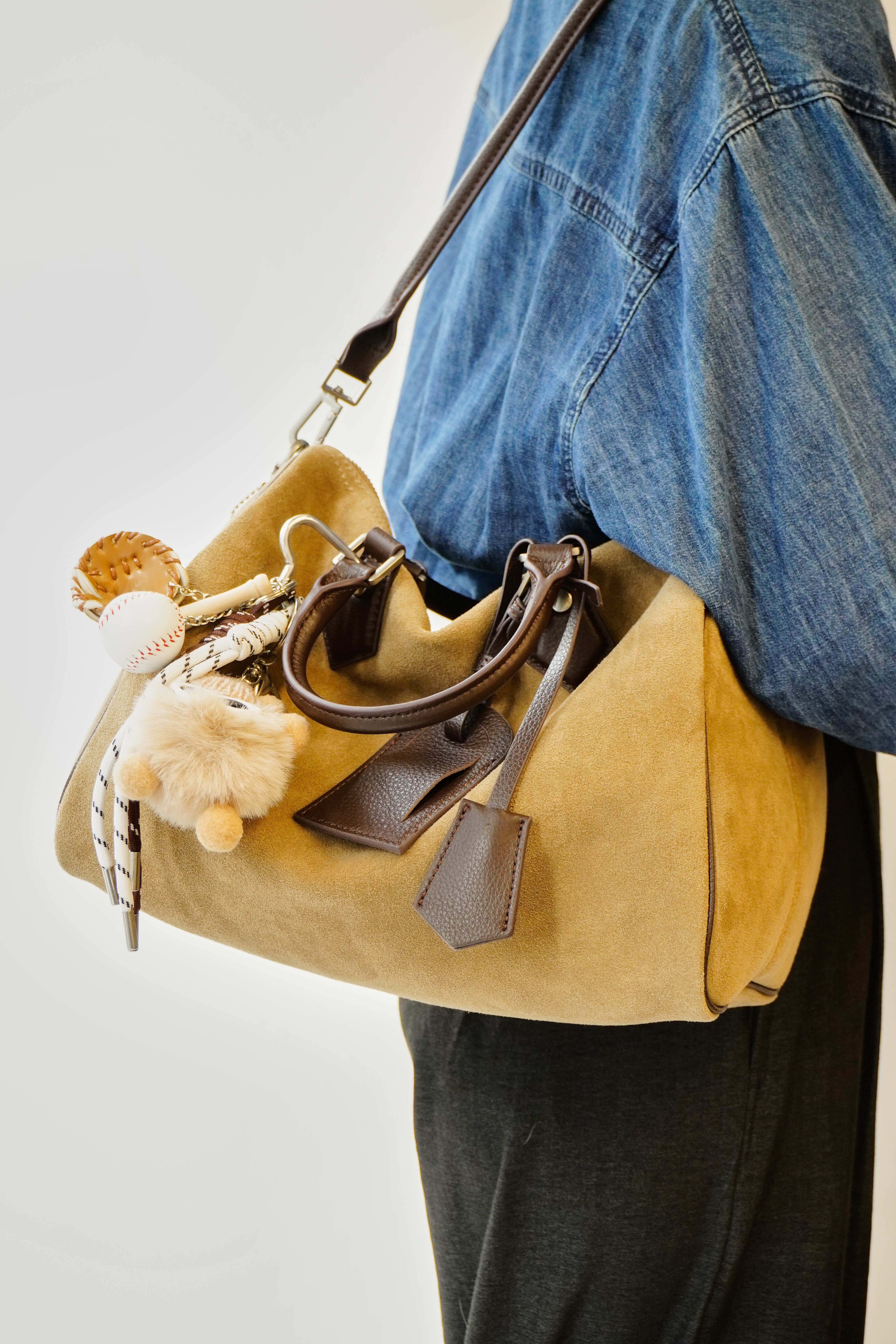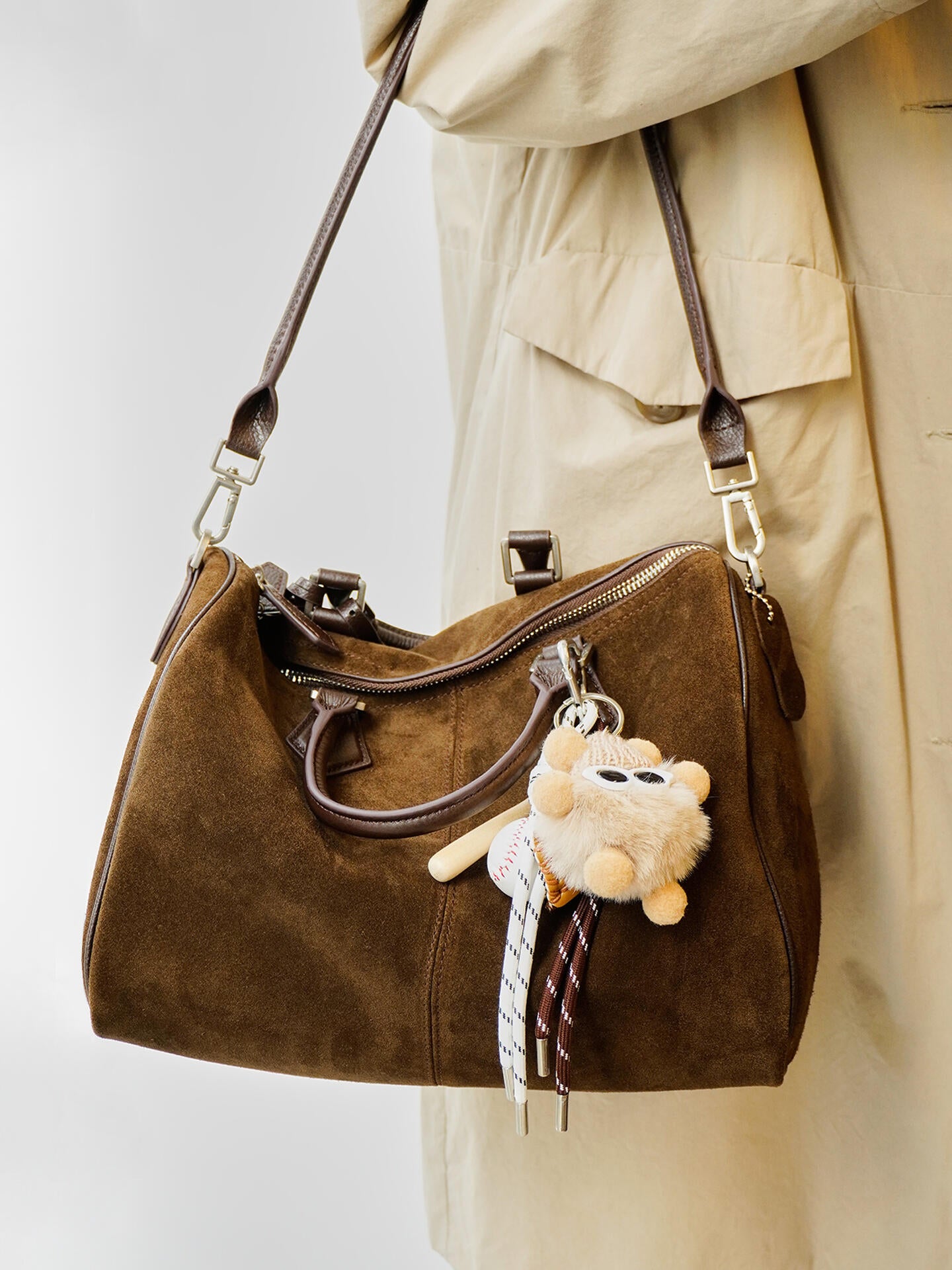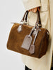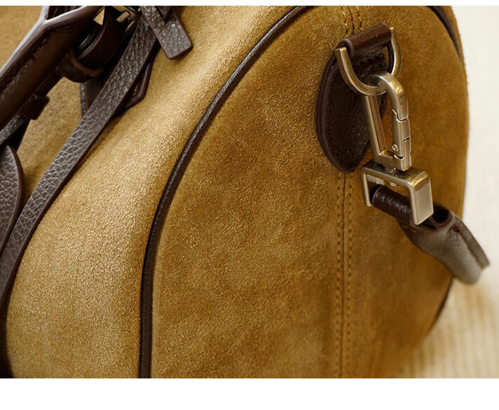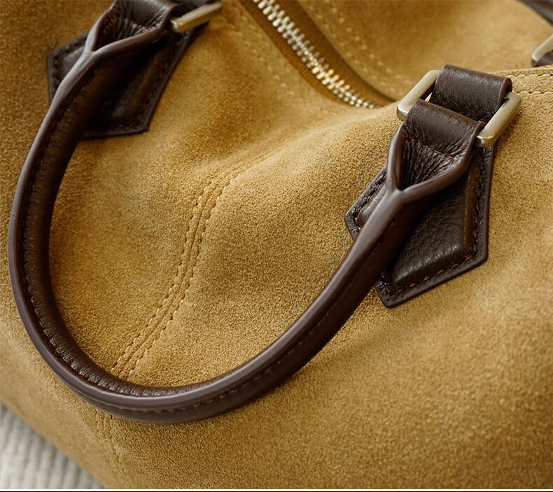 Women's Suede Leather Boston Bag | Large Shoulder & Crossbody Handbag for Fall/Winter | Vintage Commuter Bag